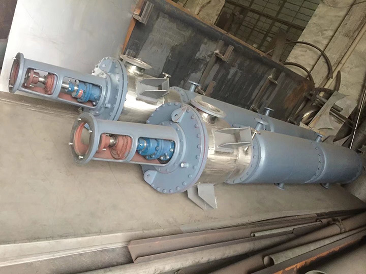 4、改變刮板溝槽旋轉(zhuǎn)方向,可以調(diào)節(jié)物料在蒸發(fā)器的打理時間。